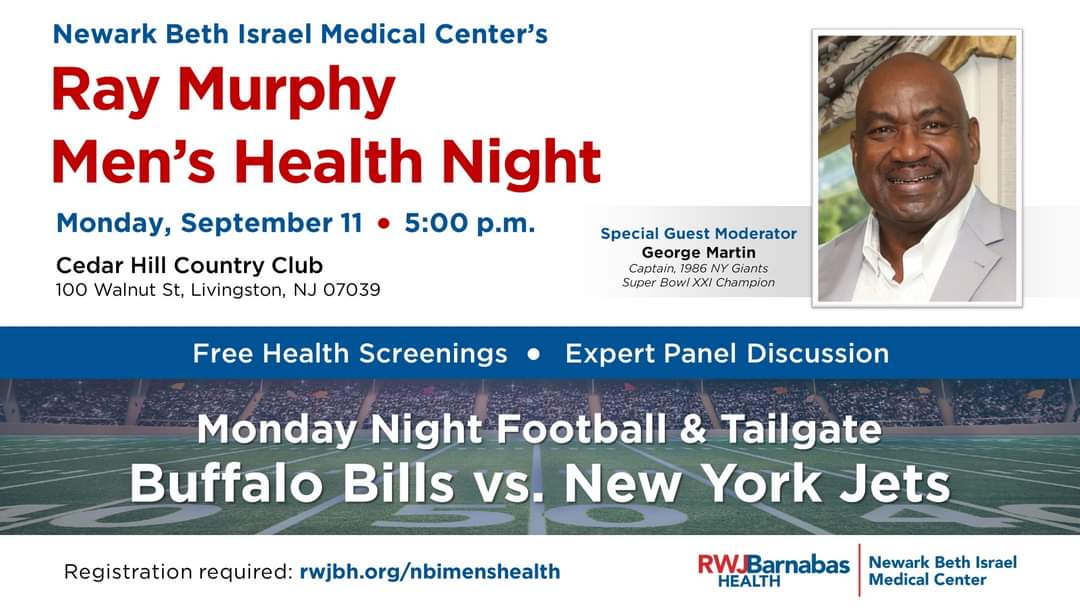 There will be a Ray Murphy Men's Health Night sponsored by Newark Beth Israel Medical Center's on Monday, September 11th at 5:00PM; Cedar Hill Country Club, 100 Walnut St., Livingston NJ 07039.
