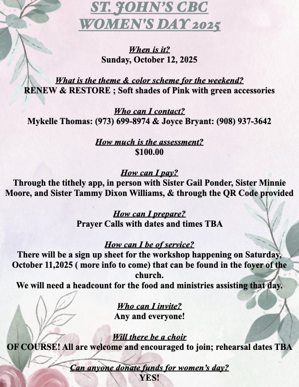 We are excited to extend a heartfelt invitation to join us for our annual Women’s Day celebration on Sunday, October 12, 2025, at 10:00 AM.
